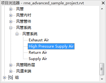 在以下示例中,“高压送风”是从“送风”系统类型创建的,并且具有相同的系统分类。