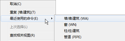 在绘图中单击鼠标右键,然后单击“最近使用的命令”