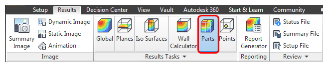 8. Click Results (tab) > Results Tasks (panel) > Parts.