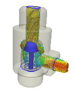Simulate water flowing through a hydraulic control valve. The valve is half open, so the goal is to find the pressure drop and flow distribution. |