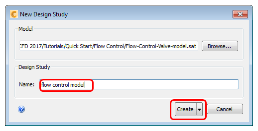4. On the New Design Study dialog, enter a name for the Name, make sure the active option on the button is Create, and click Create: