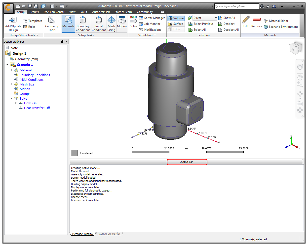 1. To open up some additional screen space, collapse the Output bar by clicking the Output Bar button: