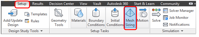 1. Switch to the Mesh task by clicking Mesh Sizing from the Setup tab: