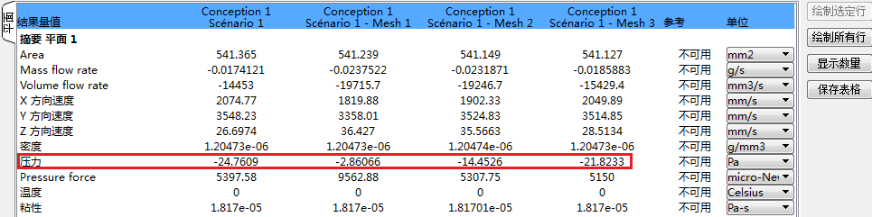 要打印四个网格中的压力,请单击“压力”,然后单击“绘制选定行”按钮: