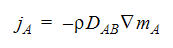 where j A is the mass flux of species A. This is how much of A is transferred (per time and per unit area normal to the transfer direction). It is proportional to the mixture mass density, and to the gradient of the species mass fraction, mA. The units of the Diffusivity coefficient are length squared per time.