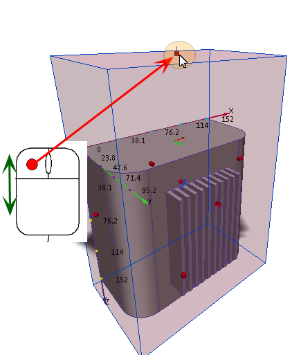 The surfaces and edges of the volume cannot contact or intersect any part of the model. The minimum size is 5% larger than the geometry in all three Cartesian directions.