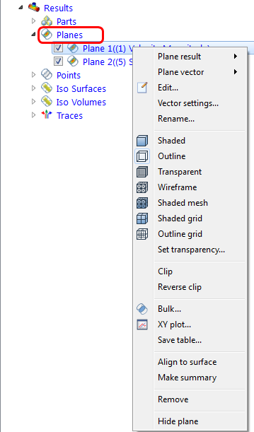 From the Planes branch, you can create new results planes by right clicking on the branch, and clicking Add plane.