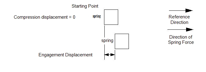 If at time = 0 the spring is fully compressed by the object, then the compression displacement is zero, and the engagement displacement is the distance to where the spring is no longer compressed: