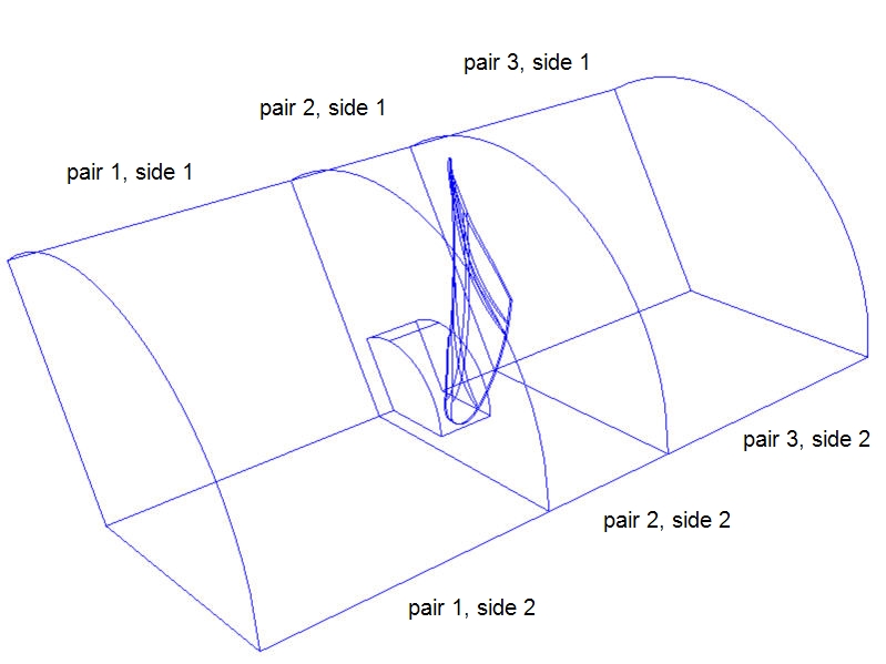 Periodic boundary conditions can also be used for non-rotating devices, such as a stator cascade. Periodic pairs are required at the inlet and outlet extensions: