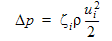 Loss coefficients in Autodesk® CFD are expressed without units, and are independent of the length of the resistance in the model. The equation describing these losses is written in terms of a pressure drop instead of a pressure gradient:
