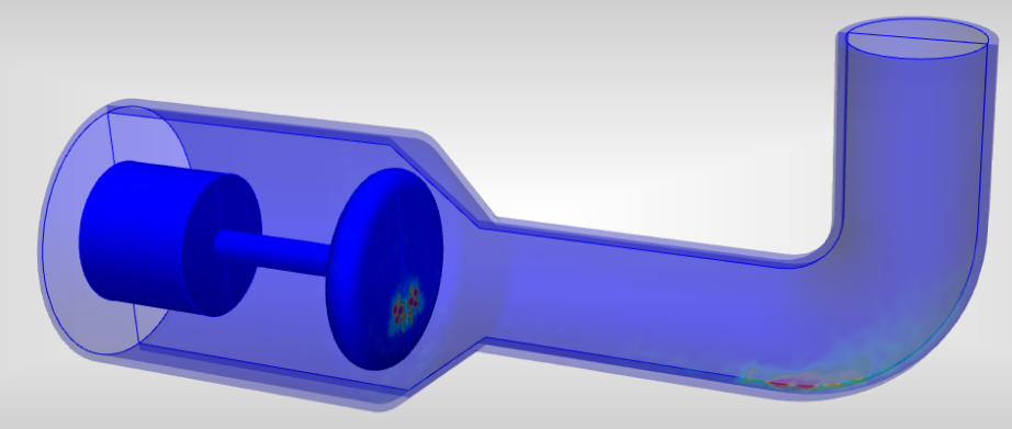 When mass is enabled on the traces, we see how particles in the flow impinge on the outside area of the bend and on a relatively small area of the poppet face: