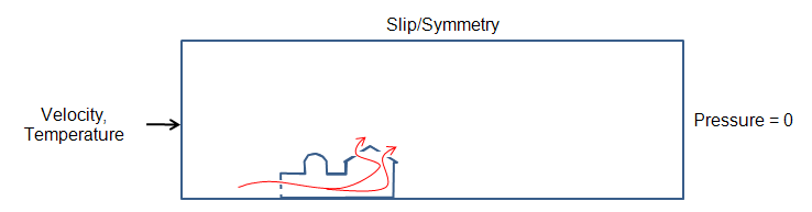 - If the air region simulates a free-space environment (not a wind-tunnel), assign Slip/Symmetry to the top and sides of the region. (Do not specify a condition on the ground plane, because the air does not physically move along the ground plane.)