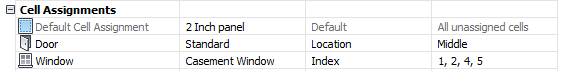 A cell assignment defines the infill definition used for the cells. You can use one cell assignment to assign the same infill to all cells, or you can create multiple cell assignments to assign different infills to different cells.