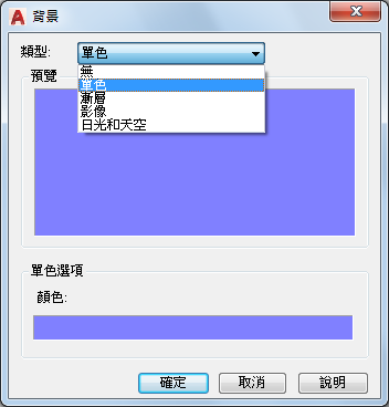 列示可套用至具名視圖的背景取代 (無、實體、漸層、影像或日光和天空)。