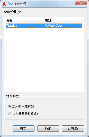 顯示已加入至圖塊定義的參數的可用自訂性質。
