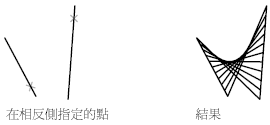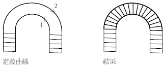對於開放曲線,直紋網面的建構是根據曲線上指定點的位置進行的。