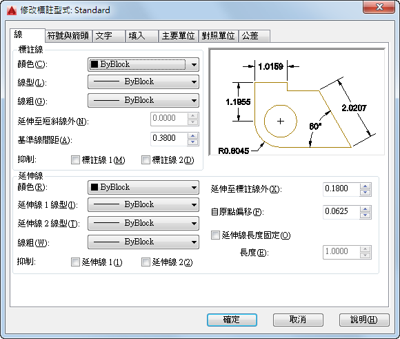 標註型式可協助您建立及執行製圖標準。您可以使用 DIMSTYLE 指令來設定許多標註變數,以控制標註外觀和模式的細微差別。所有這些設定都儲存在每個標註型式中。