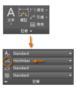 在 Hitchhiker 這個案例中,目前的標註型式會顯示在「註解」面板的下拉式清單中。