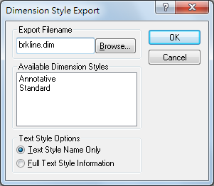| Text Style Options | 擇一將標註的「完整文字型式」資訊或「僅限文字型式名稱」儲存至ASCII 檔案。 |