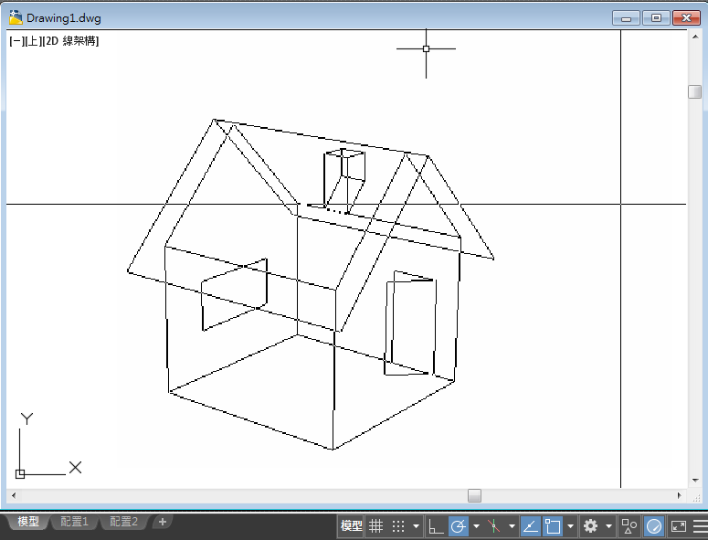 如果您在出現「選取物件」提示時按 Enter,DVIEWBLOCK 會顯示預覽影像。您可以在一個 1 單位乘 1 單位乘 1 單位的區域內自行建立 DVIEWBLOCK 圖塊,其原點在左下角。下列圖解展示了一個使用預設 DVIEWBLOCK 設定視圖 (移動圖形游標可調整視圖) 的範例。