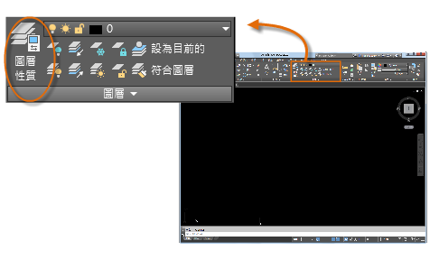 若要查看如何組織圖面,請使用 LAYER 指令以開啟「圖層性質管理員」。您可以在指令視窗中輸入 LAYER 或 LA,或者您可以按一下功能區上的「圖層性質」工具。