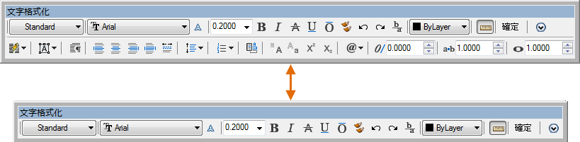 控制「文字格式化」工具列的顯示。此選項會設定 MTEXTTOOLBAR 系統變數。(不適用於單行文字。)