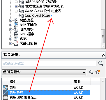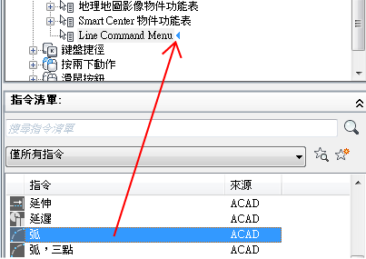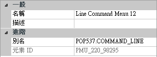 若要在快顯功能表中插入與作用中指令有關的功能表選項,請務必使用別名 COMMAND_commandname。commandname 的文字可以是任何有效的指令。例如,如果您想要在使用 LINE 指令時,顯示快顯功能表的功能表選項,請使用別名 COMMAND_LINE。