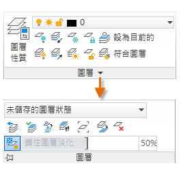 您可以設定鎖住圖層的淡化層次或隱藏圖層。 查找