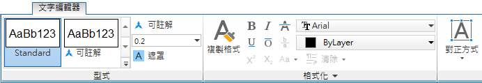 註: MTEXTTOOLBAR 系統變數可控制「文字格式」工具列的顯示。