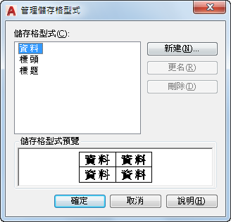顯示目前表格型式中的所有儲存格型式,並可讓您建立和刪除儲存格型式。