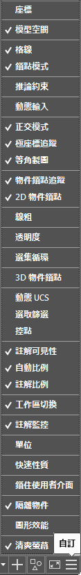 依預設,「座標顯示」不會出現在狀態列中。若要在狀態列上顯示座標,您可以從狀態列「自訂」按鈕選取「座標」。