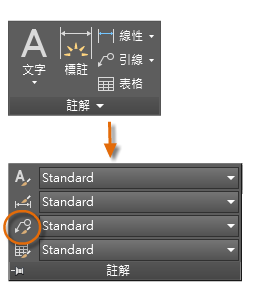 您可以從展開的「註解」面板下拉式清單中,建立自己的多重引線型式,或在指令視窗中輸入 MLEADERSTYLE。