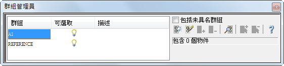 當群組不可選取時,無法使用燈泡圖示,並且選取單一群組成員時,僅會選取該物件。當系統變數 PICKSTYLE 設為 0 時,無可選取的群組。