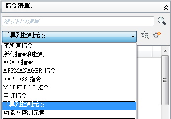 - 在「指令清單」窗格的「品類」清單中,選取「功能區控制元素」。