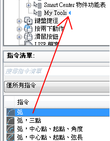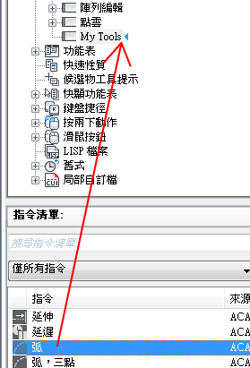 「指令清單」窗格僅會顯示工具列控制元素的清單。