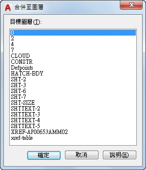 顯示依字母順序列示的圖層清單,所選圖層或物件可在這些圖層上合併。