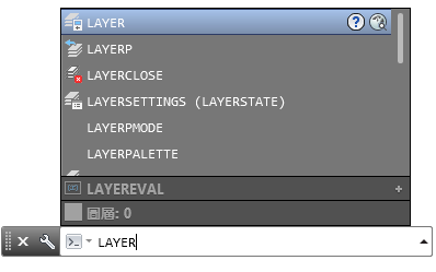 如果關閉自動完成功能,您可以在指令行鍵入一個字母,然後按 Tab 鍵循環顯示所有以該字母為開頭的指令與系統變數。按 Enter 或空格鍵可啟動指令或系統變數。