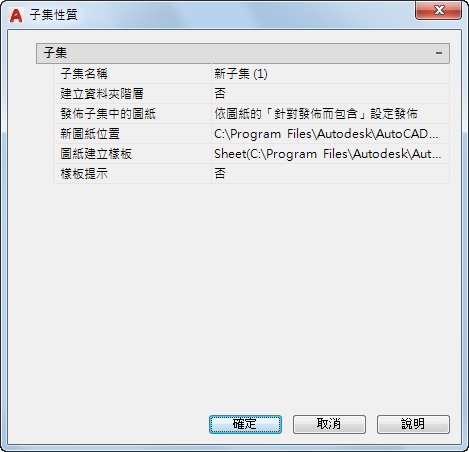 為包含此子集相關圖紙的所有新圖檔 (DWG) 指定資料夾位置。