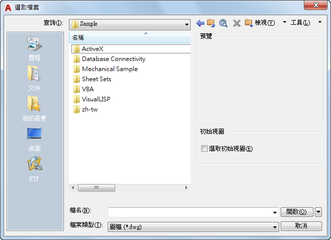 在對話方塊中選擇「視圖」「預覽」後,會顯示所選檔案的點陣圖。若要在儲存圖檔時也儲存點陣圖,請使用「選項」對話方塊中「開啟與儲存」頁籤上的「儲存縮圖預覽影像」選項。