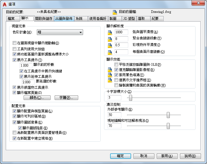 在繪製區的底端顯示配置頁籤與模型頁籤。如果清除此選項,在狀態列上按鈕將取代頁籤。