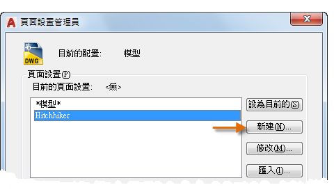 若要開啟「頁面設置管理員」,請在「模型」頁籤或配置頁籤上按一下滑鼠右鍵,然後選擇「頁面設置管理員」。指令為 PAGESETUP。