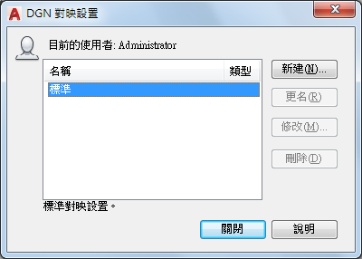 針對 DGN 資料匯入或匯出,建立、更名、修改及刪除對映設置。