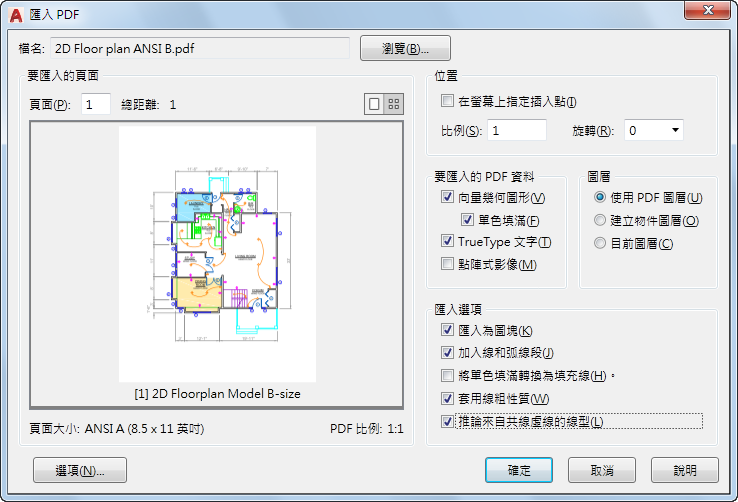 - 將 PDF 檔匯入為圖塊,而不是做為獨立物件。