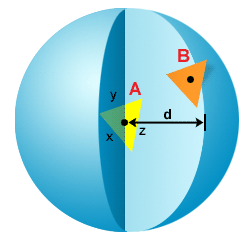 在此情況下,如果您取得元素 A 的平均長度 ((x+y+z)/3),並將其與 GIP 數相乘,即會得到距離 d。在形心與元素 A 的形心之間的距離在此範圍內的所有元素,都會包含在計算中。因此,若要將元素 B 包含在元素 A 的計算結果中: