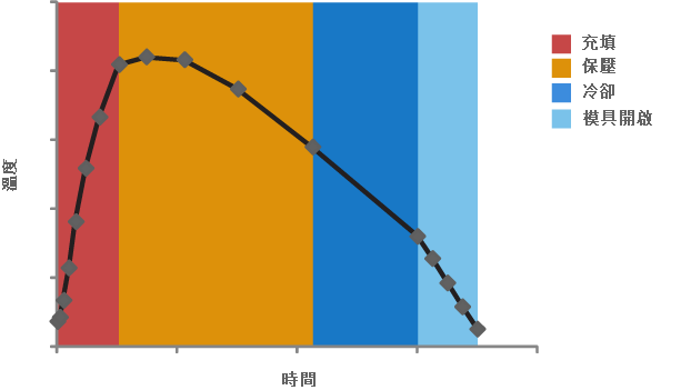 射出成型週期期間的模具溫度變化