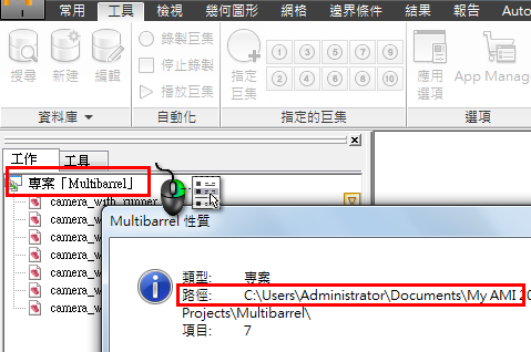 - 在專案名稱上按一下右鍵,然後在下拉功能表中選取「性質」以決定專案位置。