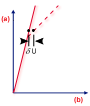表示兩個平衡構形之間的無窮小位移。從第二個方程式中減去第一個方程式可得出:
