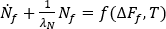 有關結晶流動的影響,其考慮因素為使過量自由能量和流動引起的配向與結晶動力學相關聯。流動引起的核數由下列微分方程得出: