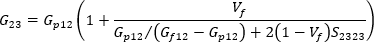 其中 S1212 和 S2323 為 Eshelby 之張量的對應分量,在 Tandon 和 Weng 的論文中提供其解析解。