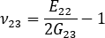 單軸對齊系統的平面外蒲松氏比可以從複合模數明確計算為: